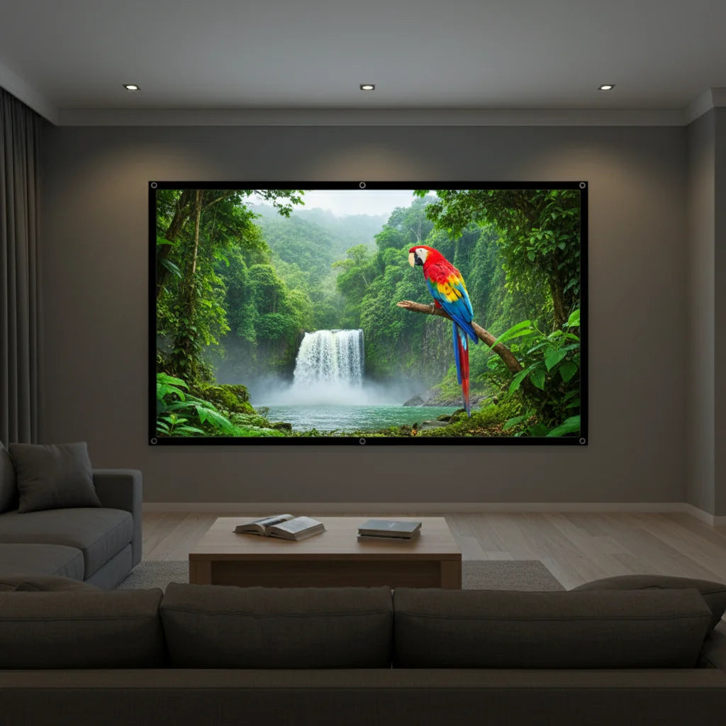 מסך המקרן שלנו מציע יחס גובה-רוחב 16:9, אידיאלי לצפייה בסרטים ותוכניות טלוויזיה בפורמט רחב, ומספק חוויה קולנועית אמיתית.